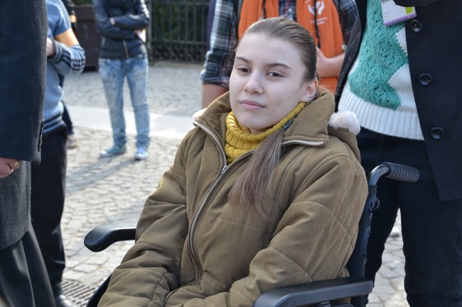 În continuare, a rostit un cuvânt părintele Felician Tiba, directorul Oficiului pentru Familie din cadrul Episcopiei Romano-Catolice, după care Andreea Dăncinescu, persoană cu dizabilităţi locomotorii, studentă în anul al II-lea la Facultatea de Psihologie, a vorbit despre ce înseamnă viaţa pentru ea: „În momentul în care Dumnezeu alege să vină pe lume copii cu probleme, înseamnă că acest lucru are un rost şi nu avem noi dreptul să întrerupem cursul vieţii unei fiinţe umane neajutorate. Îndemnul meu pentru viitoarele mame e să gândească cu inima şi să ia decizii cu precauţie şi cu mare atenţie. Cunosc cazuri de mame cărora, mergând la medic, li s-a spus: ne pare rău, dar din acest copil nu mai ai ce face; are o dizabilitate irecuperabilă. Printre aceste cazuri este şi cel al mamei mele, căreia medicii i-au spus că viitorul ei copil va fi o persoană cu care nu se va putea lucra şi pe care nu se va putea baza. Am 22 de ani, sunt studentă în anul al II-lea la Facultatea de Psihologie şi spun cu tărie că se pot face lucruri minunate dacă ai iubire şi devotament. Când Dumnezeu hotărăşte să aducă pe lume şi să îngăduie viaţă copiilor cu dizabilităţi, înseamnă că El ştie de ce trebuie să facă acest lucru şi înseamnă că noi trebuie să ne schimbăm perspectiva în ceea ce priveşte viaţa şi darurile oferite de Dumnezeu“.