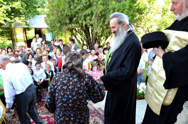 Atmosfera e una cât se poate de caldă, de convivială, chiar neprotocolară. De obicei, după scurta ceremonie din altarul bisericii, consumată într-un cerc restrâns, se iese afară, pe tăpșanul de iarbă, eventul sub umbra unui copac bătrân, unde ierarhul și invitații sunt așteptați. Mitropolitului i se oferă un scaun simplu, pentru a se odihni preț de câteva minute și a cuprinde cu privirea pe cât mai mulți din jurul său.