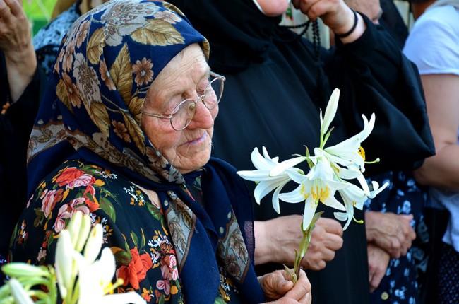 Frumos grăiește părintele acesta, are vorba dulce și spune lucruri adevărate. I se confirmă ceea ce și ea gândea, dar nu găsise cuvinte potrivite pentru a le spune: lumea asta de azi a cam luat-o razna! Și tot gândindu-se la asta, uită să îi mai dea mitropolitului cele trei fire de busuioc smulse din fața casei înainte de a veni spre biserică. La întoarcere acasă avusese noroc că o luase cu căruța niște băieți din vale pe care îi cunoștea. Dar se tot gândea că, uite, mitropolitul o ajutase să coboare scările, și ea nici măcar nu-i dăduse acele simple, dar atât de frumos mirositoare flori…