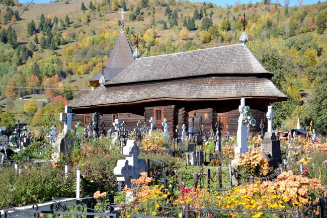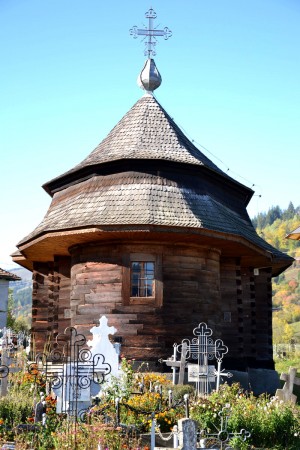 Străjuit, de-o parte şi de cealaltă de doi versanţi ce mai păstrează urme ale falnicelor păduri de odinioară, înconjurat din toate părţile de crucile moşilor şi strămoşilor aşezării, lăcaşul pare stâlpul dinspre care pleacă toate energiile acestui loc. Şi nu-i deloc de mirare, căci bârnele bătrâne stau încă drepte, neclintite nici de om, nici de năprăsniciile celor aproape trei veacuri de când a fost ridicat.