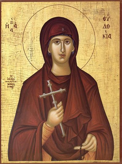 Sfânta Muceniță Evdochia a fost robită de perși și a fost dusă în țara lor, unde, fiind iscusită în Sfânta Scriptură, învăța credința pe toți robii, iar femeile perșilor, aflând de la robi despre ea, o iubeau, încât a întors pe multe la cunoștința de Dumnezeu.