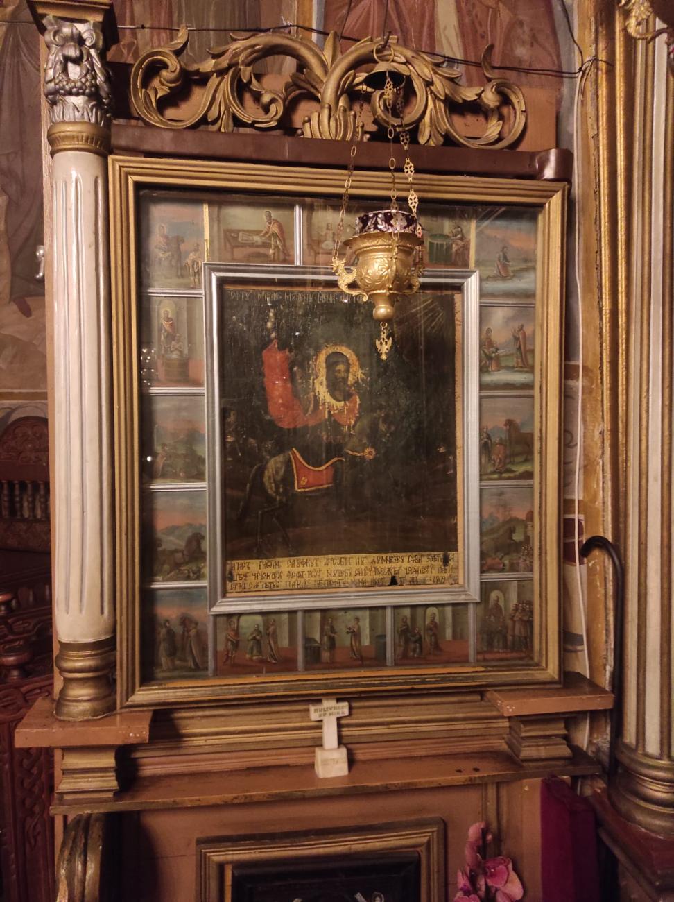 În urma unui astfel de eveniment nefericit, pentru a nu se stinge cultul Sfântului Mina[7], credincioșii s-au îngrijit să așeze în biserică o altă icoană a Sfântului, realizată pe plan local. Astfel se poate explica datarea mult mai târzie (1809) a icoanei aflate în prezent în biserică. Un inventar realizat la 1803 menționează faptul că zestrea bisericii „Sfântul Nicolae” a fost constant refăcută de donatori, după fiecare distrugere a bisericii[8].