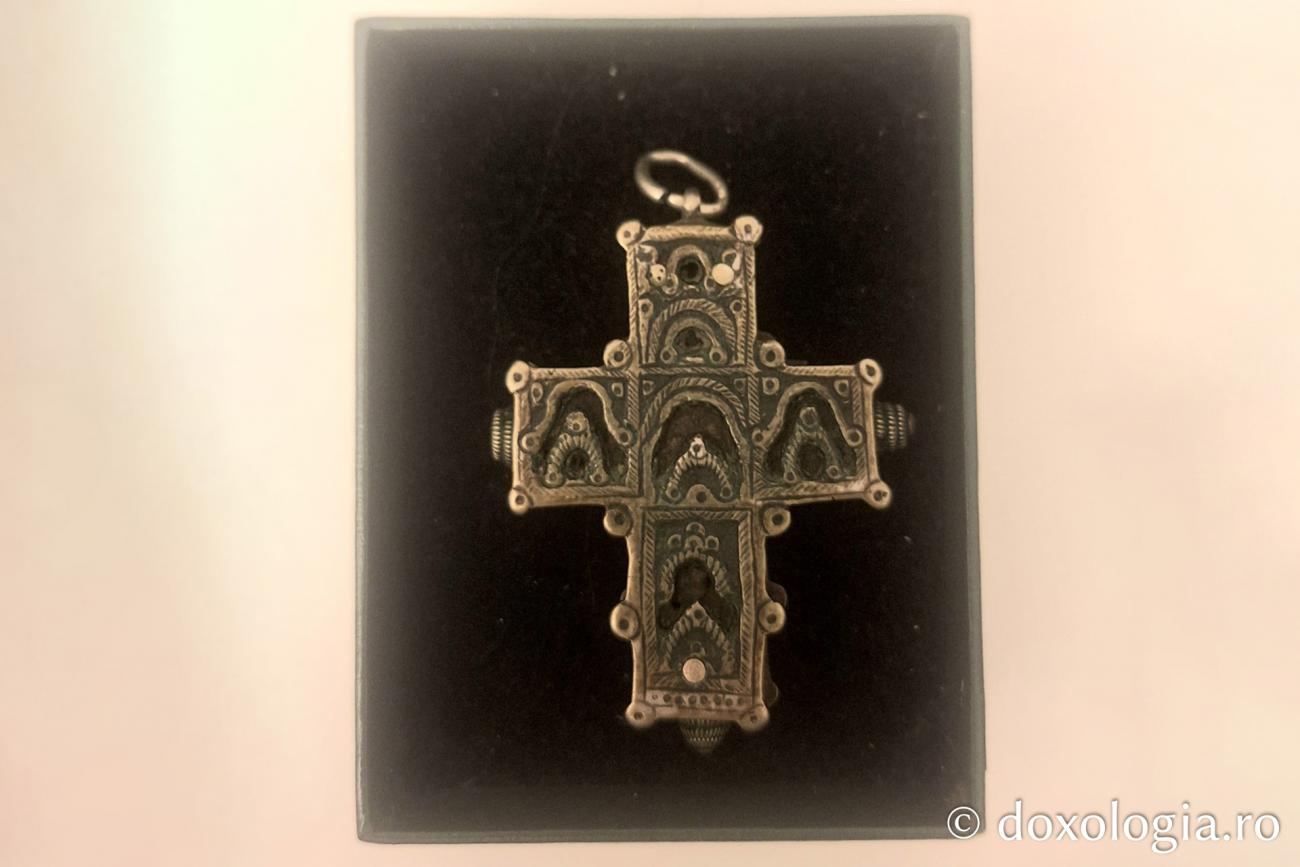 Crucea purtată de Cuviosul Cleopa este o cruce-relicvar, din metal, în stil post-bizantin, specifică pentru secolele XVII-XIX.
