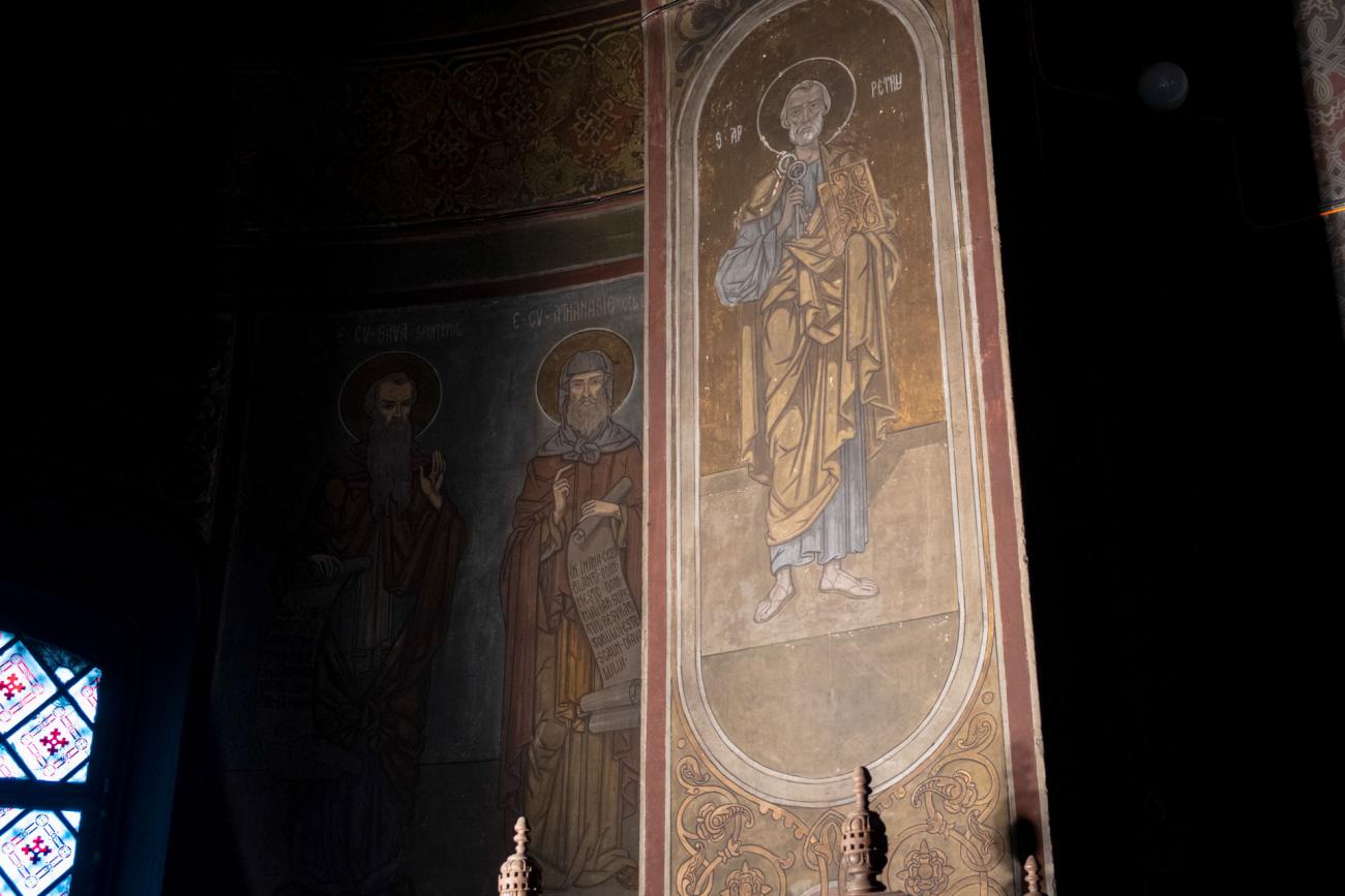 Deasupra, turla în formă de bulb, înconjurată de trei rânduri de rozete sculptate în piatră, pare să strângă cerul în brațe. La bază urcă scările largi din piatră, gândite ca o trecere firească din lumea grăbită într-un loc al odihnei sufletului. În naos se păstrează și astăzi jilțul pregătit odinioară pentru un domnitor – un detaliu care amintește de noblețea și măreția cu care a fost gândit acest loc –, iar dedesubt se află cripta familiei și muzeul ce găzduiește numeroase obiecte cu valoare culturală deosebită.