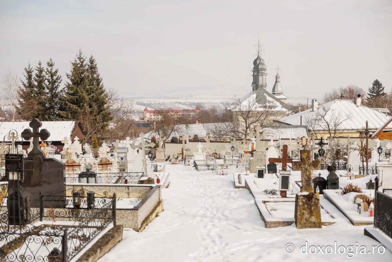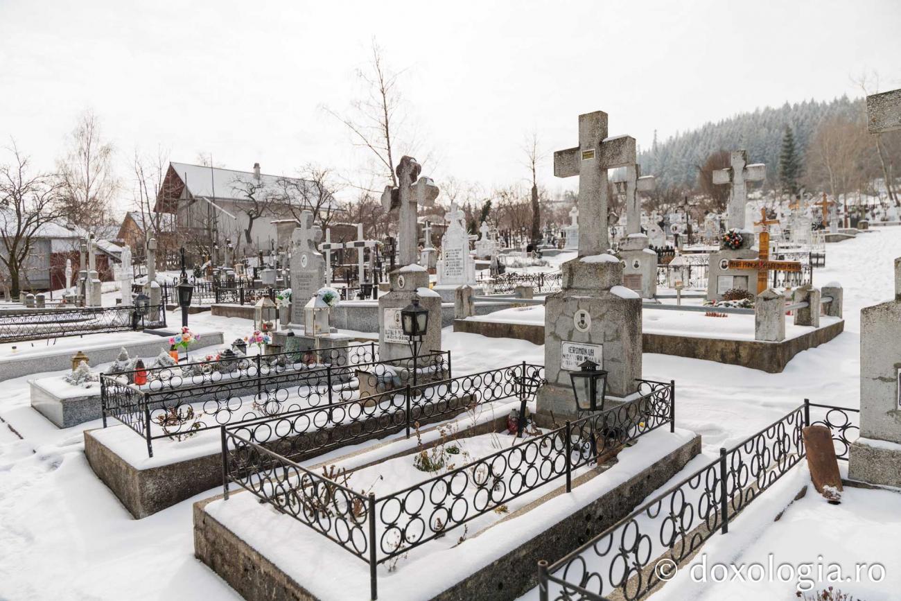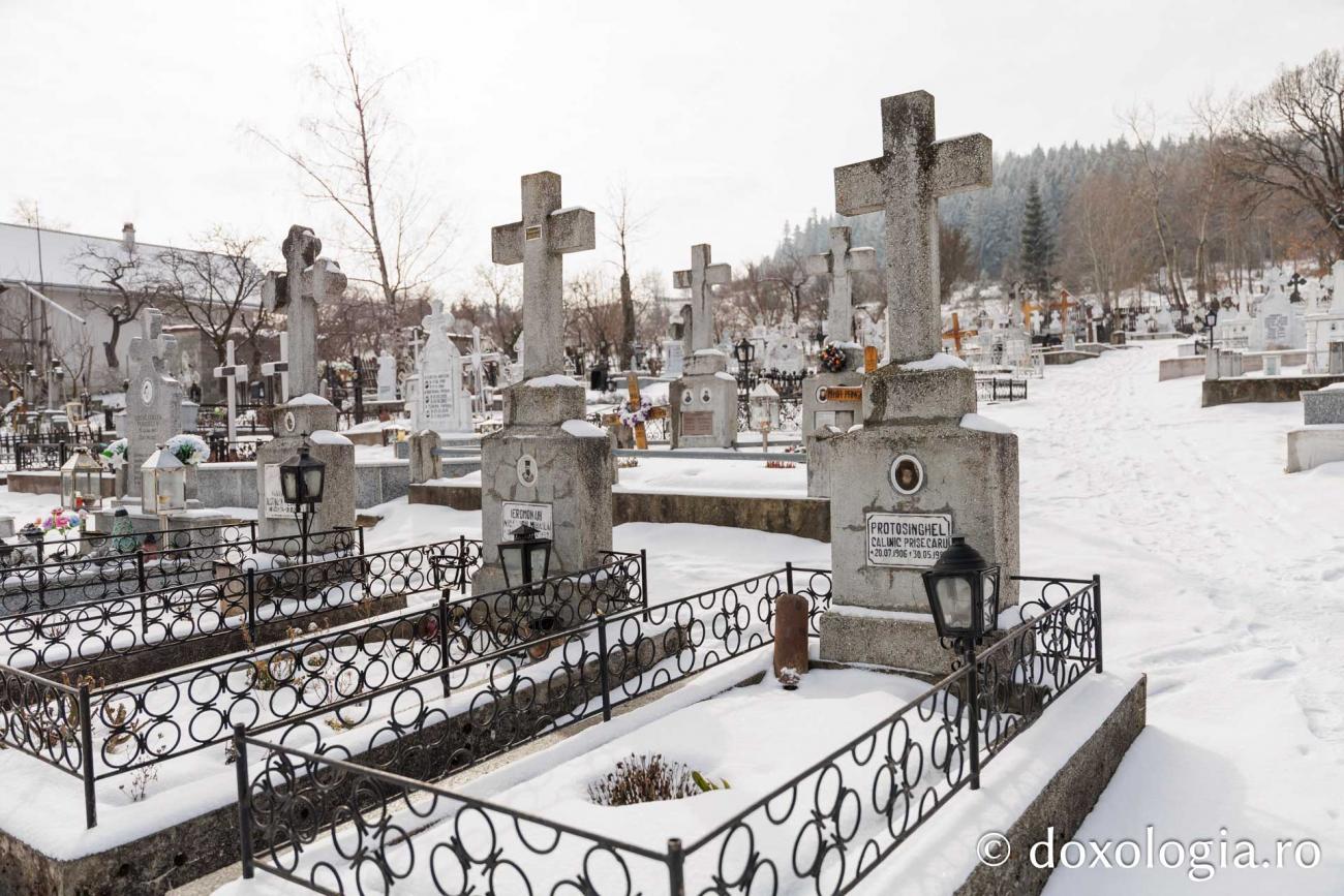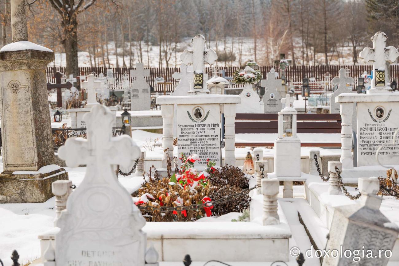 (Foto) La pas prin cimitirul Mănăstirii Văratec, acoperit de zăpadă