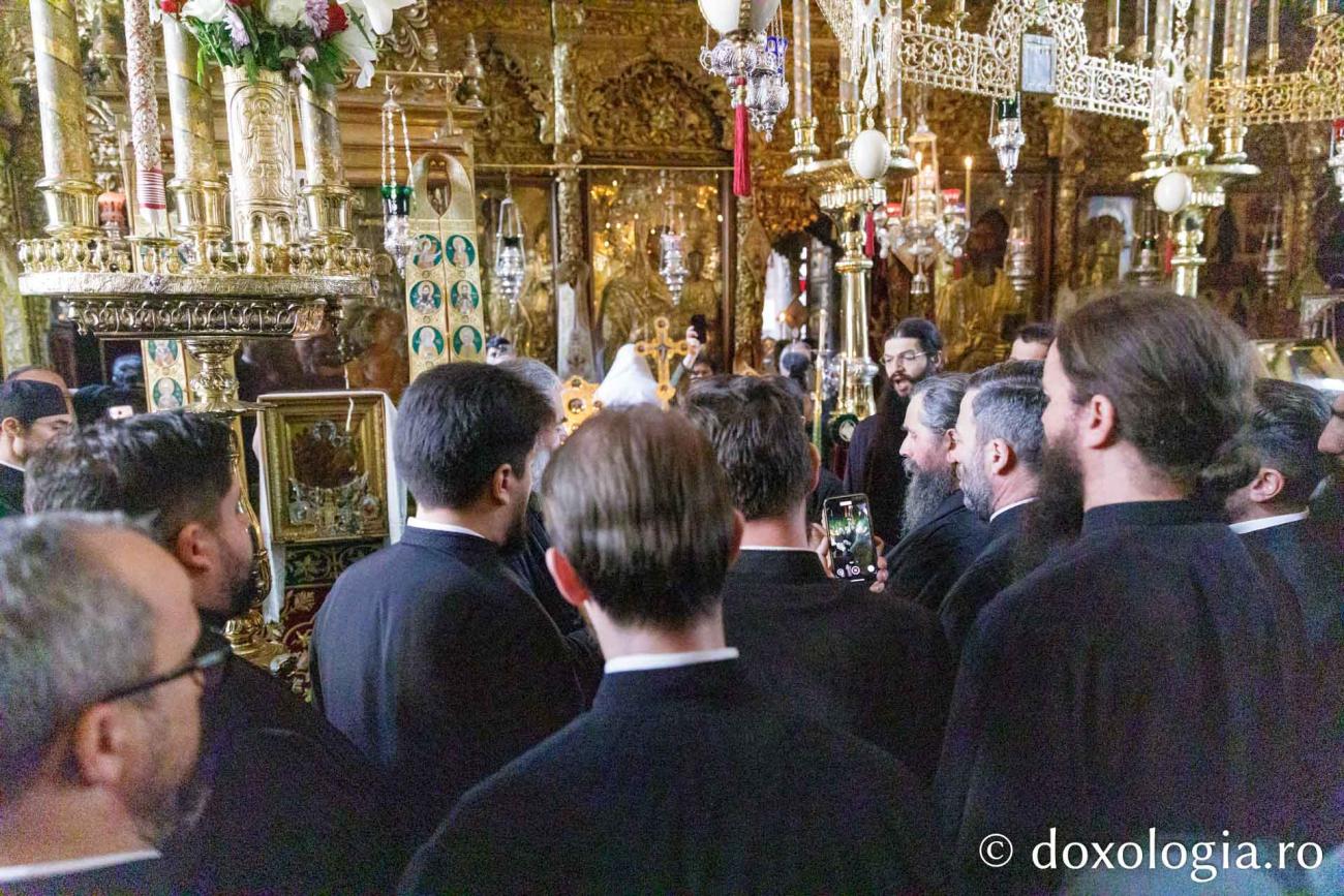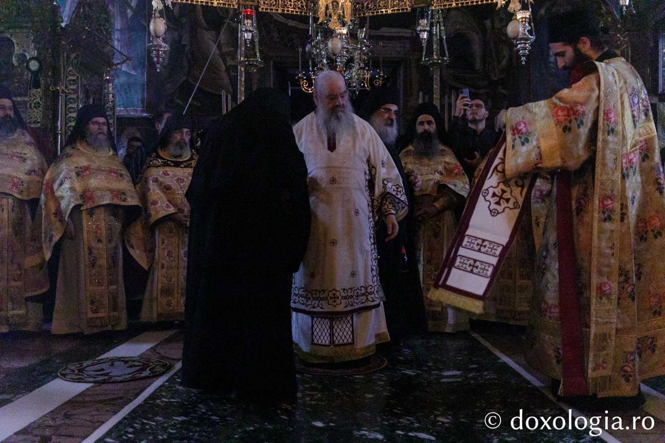 Protos al slujbei a fost Mitropolitul Atanasie de Limassol din Cipru, alături de care a slujit Preasfințitul Varlaam Ploieșteanul, Episcop-vicar patriarhal, ca reprezentat al Părintelui Patriarh Daniel.