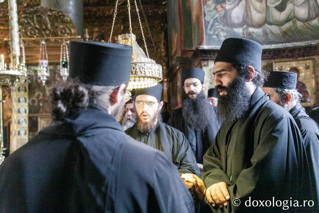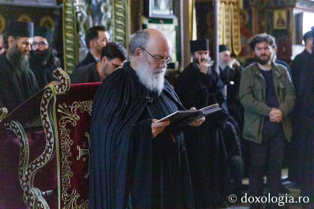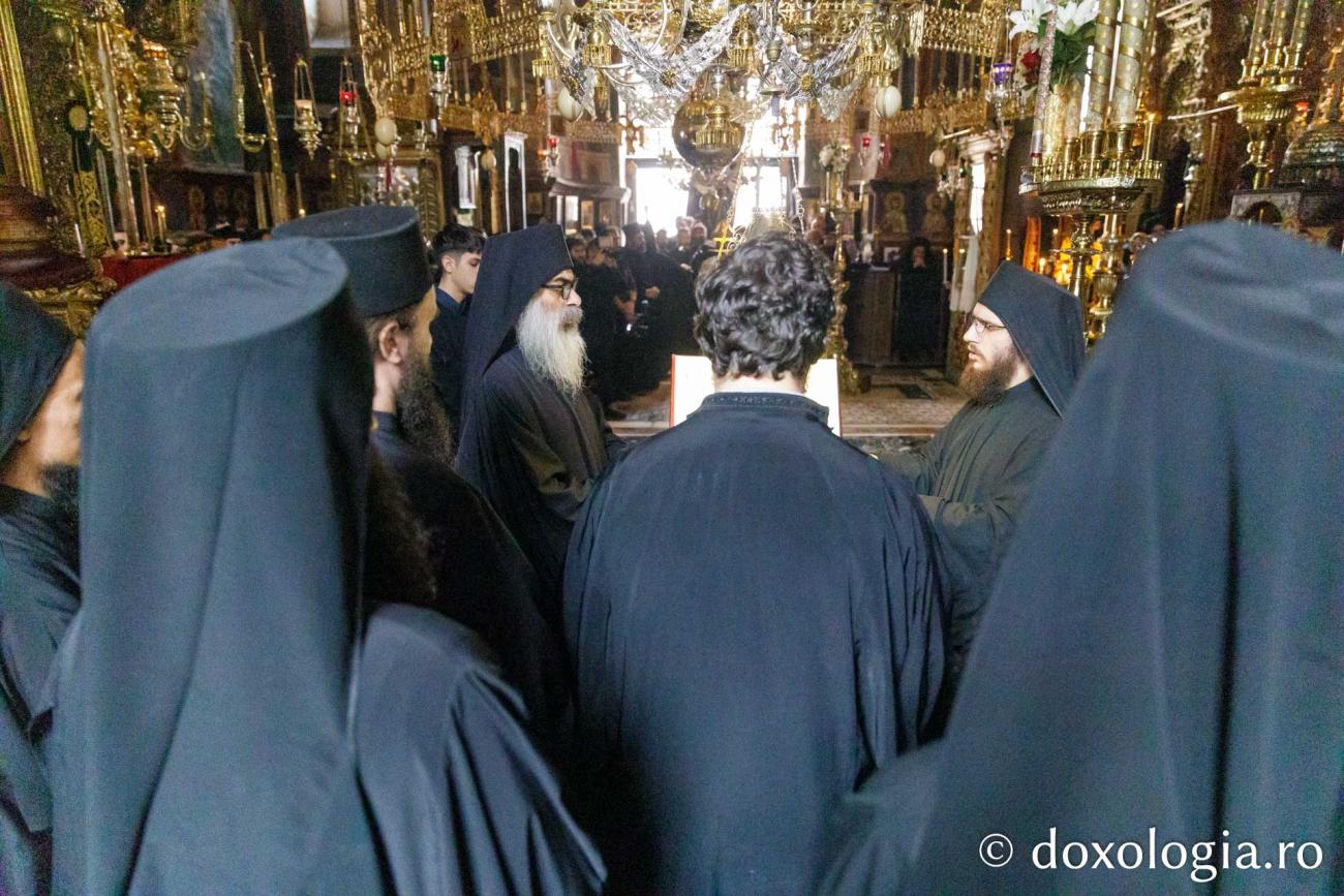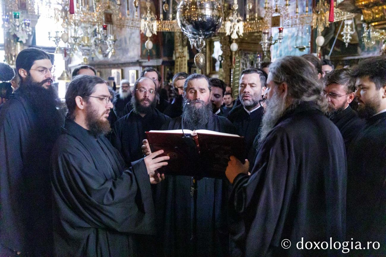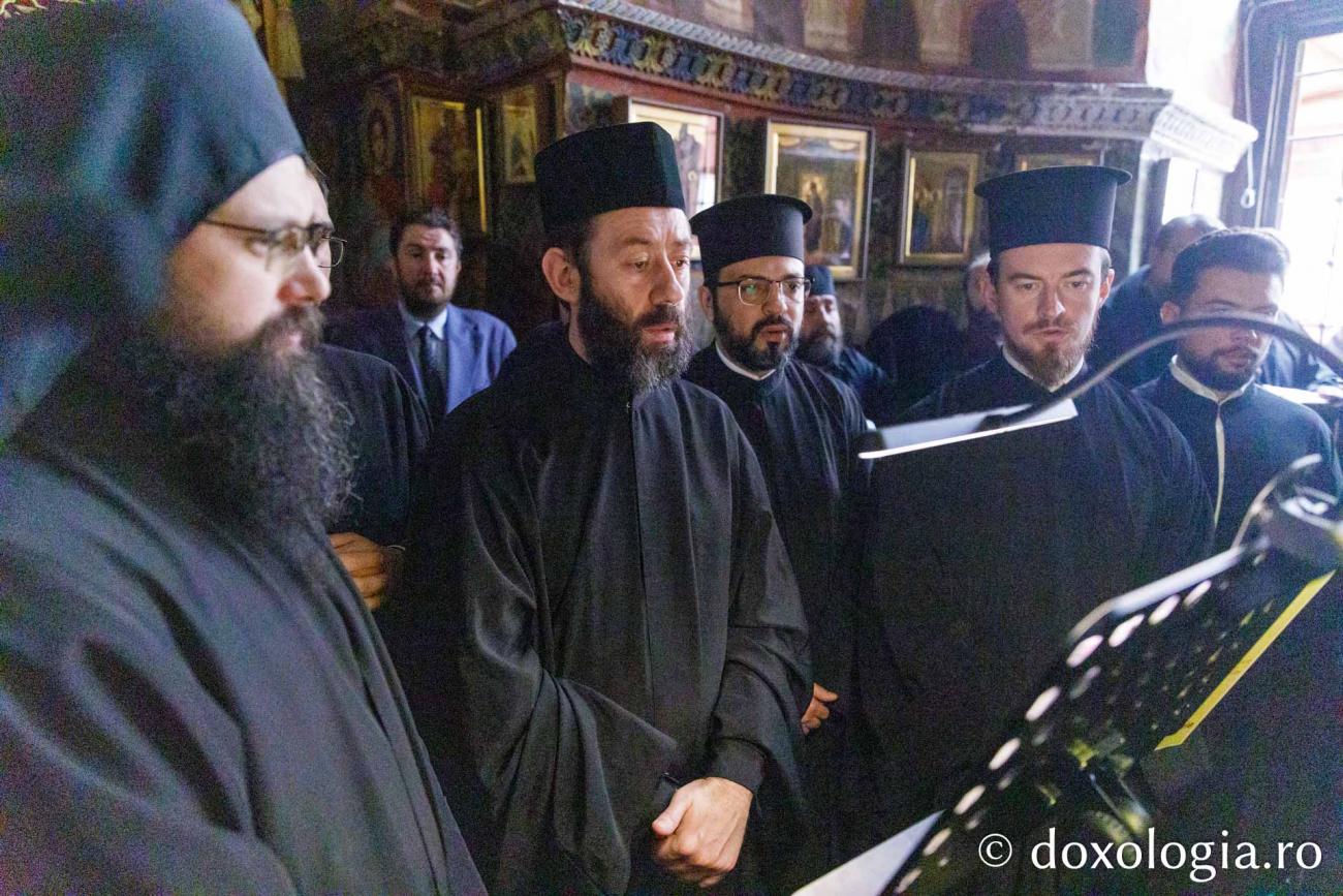 Răspunsurile la strană stângă au fost date de Corul „Tronos” al Patriarhiei Române, condus de Arhidiaconul Mihail Bucă, iar în strana dreapta a cântat părintele Damaschin de la Nea Skiti dimpreună cu ucenicii.