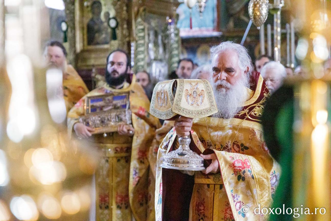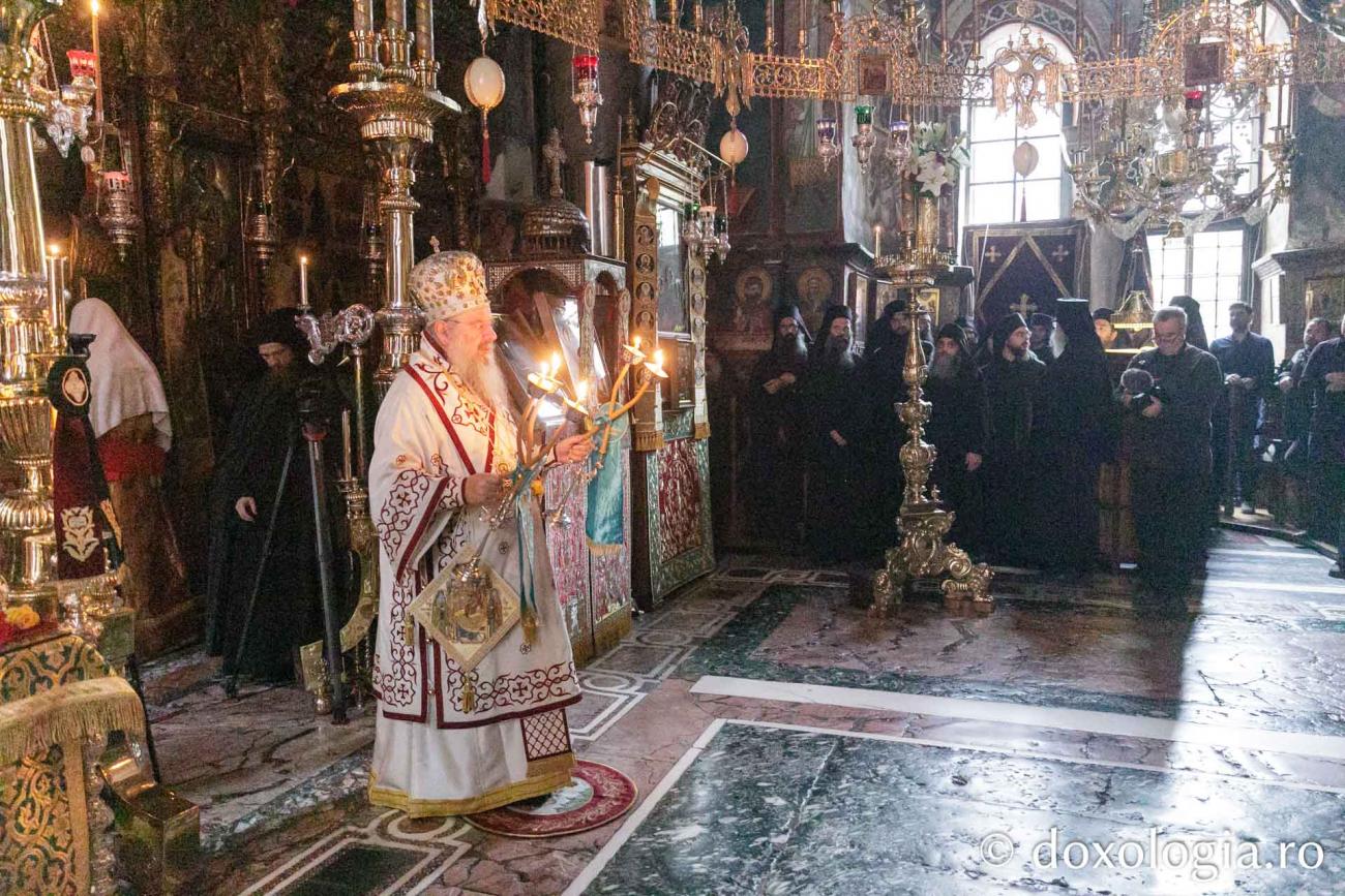 După citirea Sfintei Evanghelii, Mitropolitul Atanasie a dat citire tomului de canonizarea a Sfinților Cuvioși Dionisie de la Colciu și Petroniu de la Prodromu.