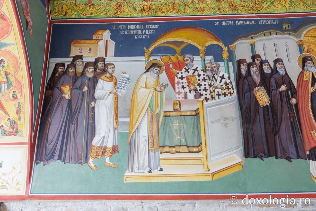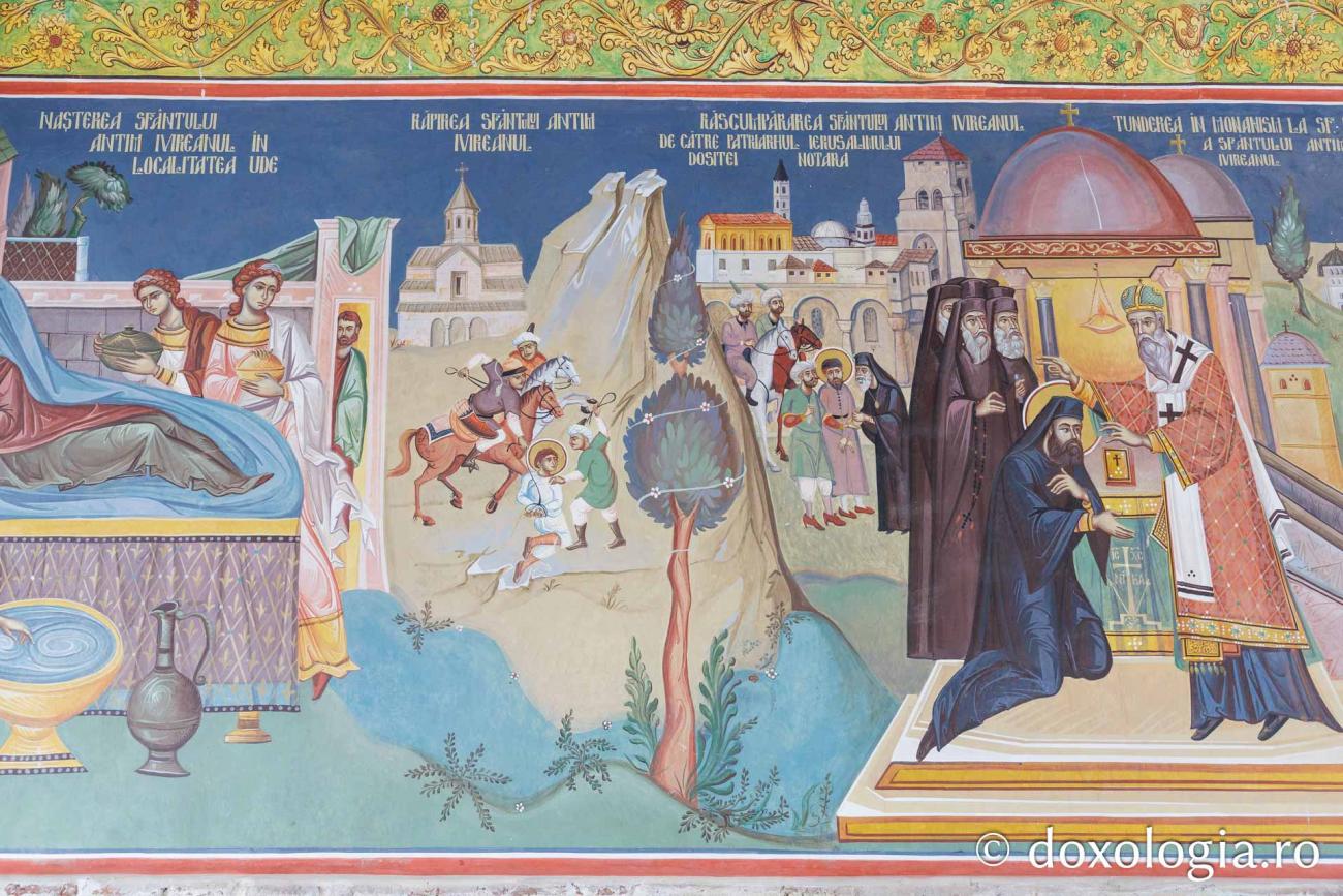 Realizată în anul 2016 de pictorul Daniel Codrescu, fresca din clopotnița Mănăstirii Antim ilustrează magistral momentele cheie din viața și opera Sfântului Ierarh Antim Ivireanul, oferind pelerinilor o biografie vizuală ce întregește portretul duhovnicesc al acestui mare ctitor și martir.