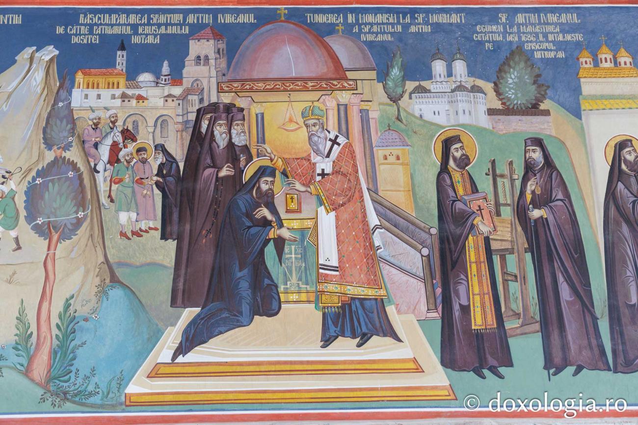 (Foto) Poarta Sfântului Antim Ivireanul – Fresca de la intrarea Mănăstirii Antim