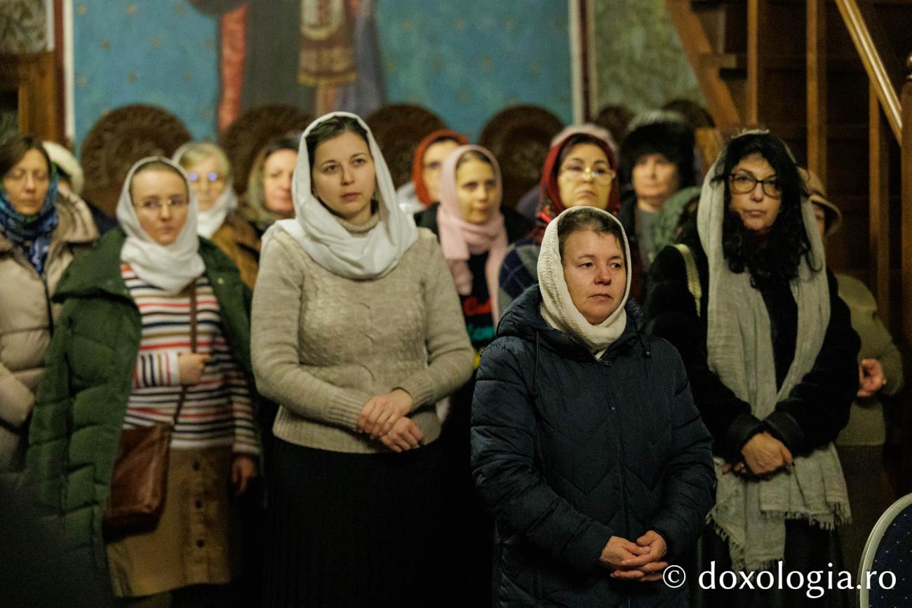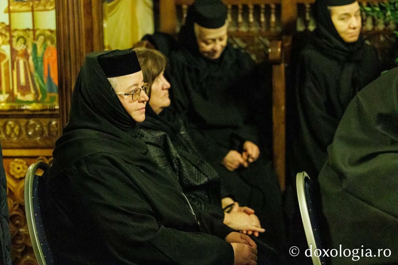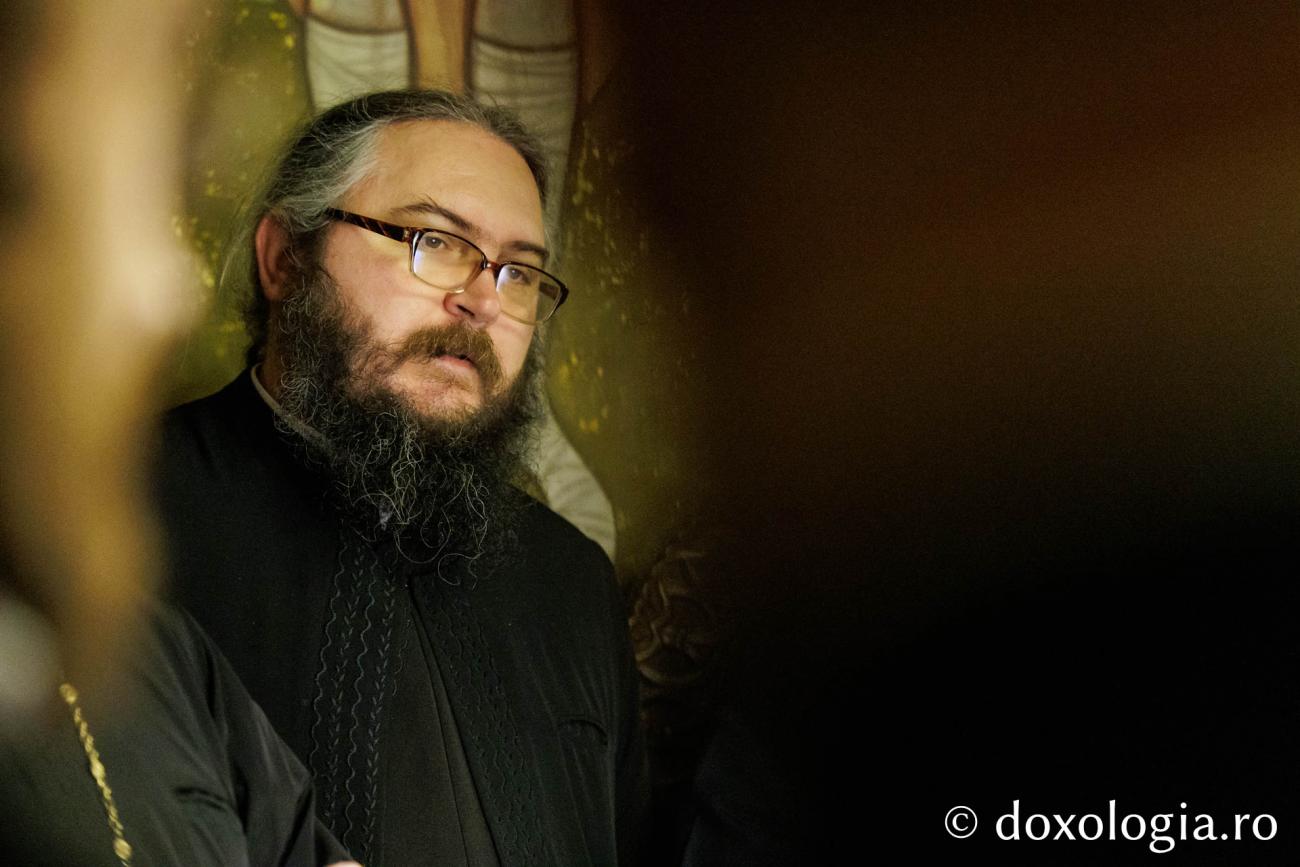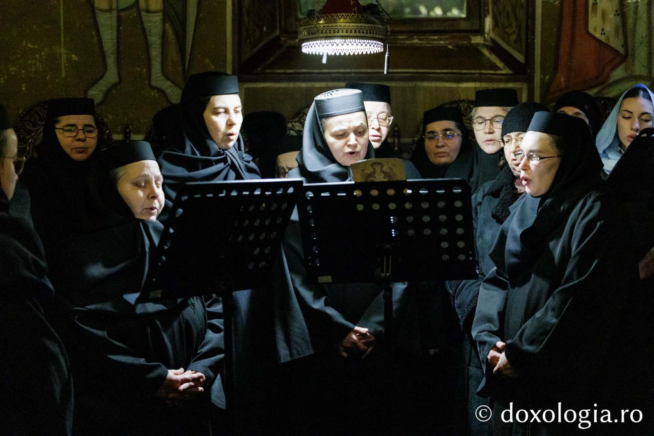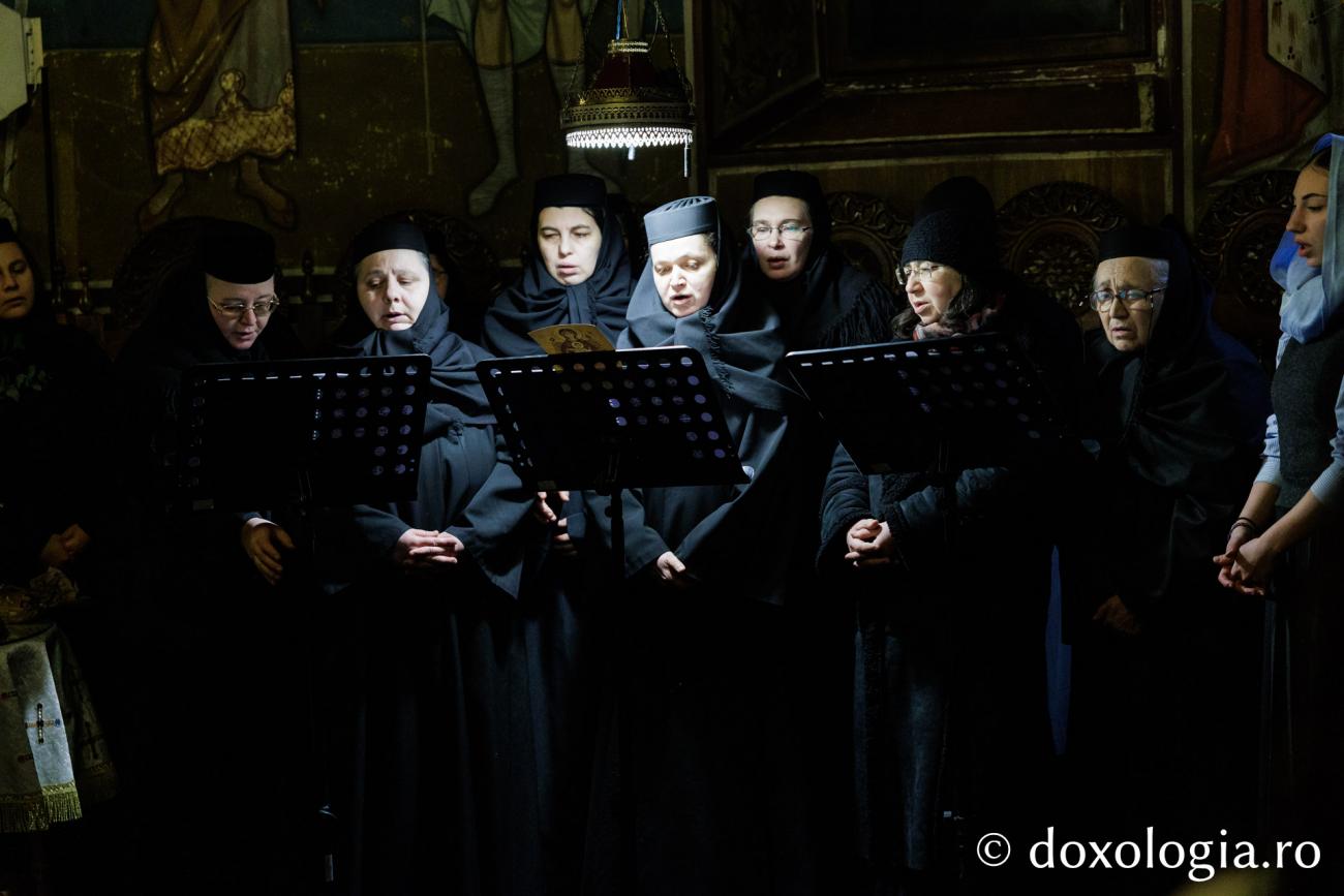 La slujba privegherii a slujit un sobor de preoți și diaconi sub protia părintelui arhimandrit Elisei Nedescu, starețul Mănăstirii „Sfinții Trei Ierarhi” din Iași, iar răspunsurile liturgice au fost date de Corul preoțesc „Apostolii” (în strana dreaptă) și, respectiv, de corul mănăstirii Copou (în strana stângă)