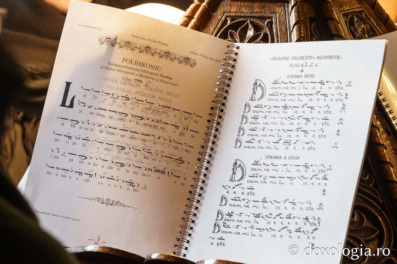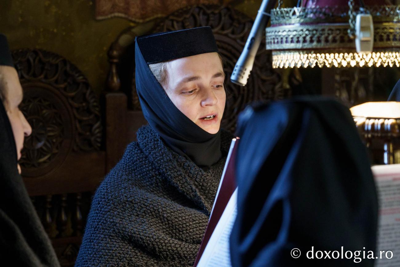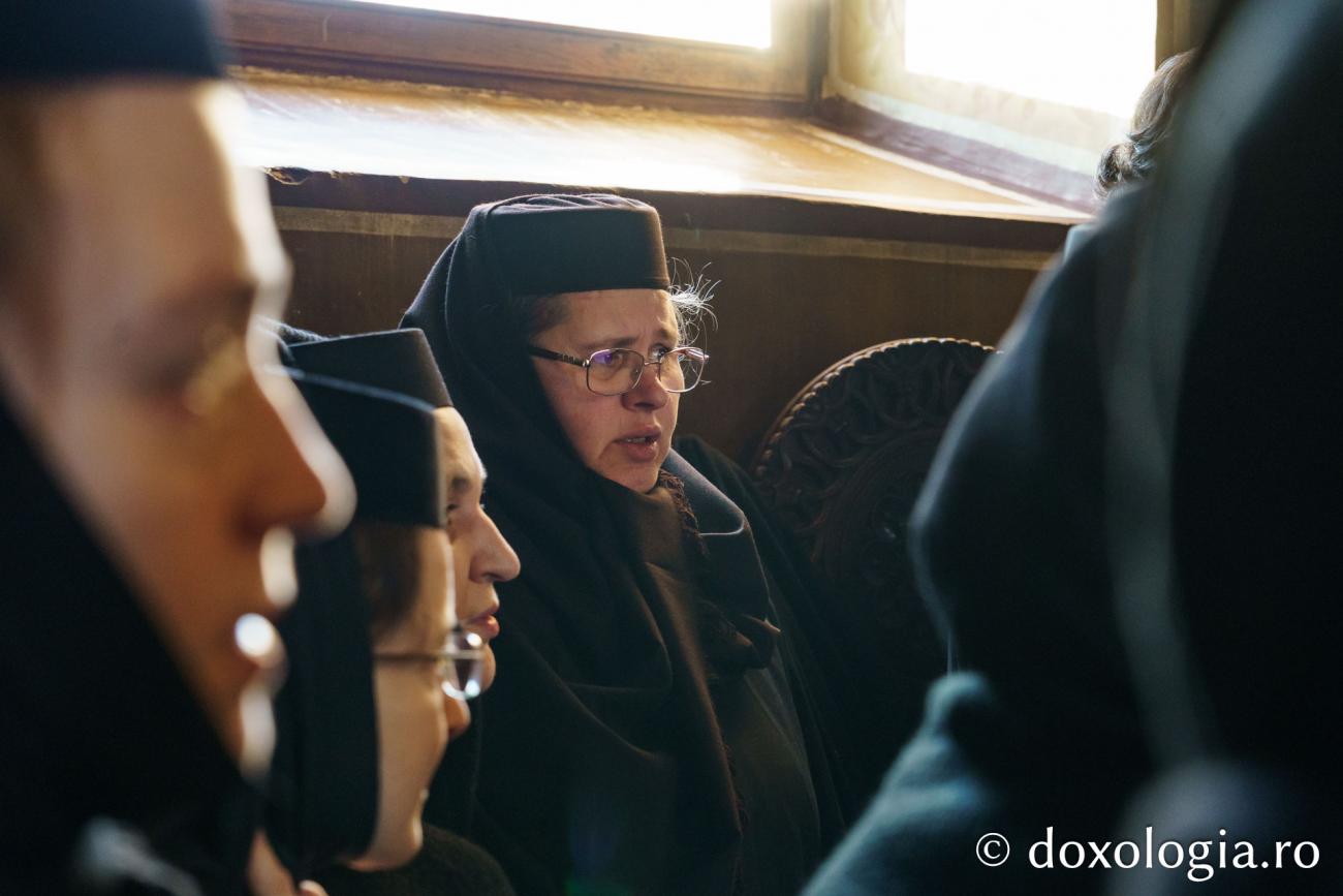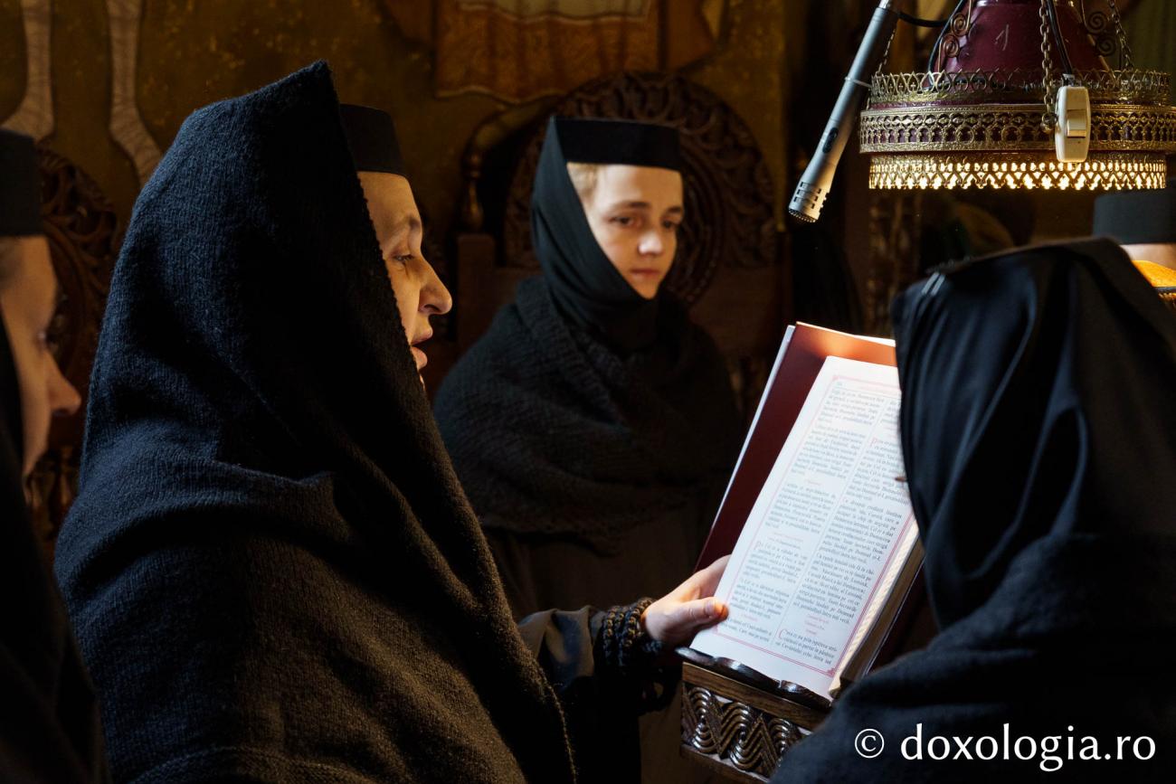 La slujba privegherii a slujit un sobor de preoți și diaconi sub protia părintelui arhimandrit Elisei Nedescu, starețul Mănăstirii „Sfinții Trei Ierarhi” din Iași, iar răspunsurile liturgice au fost date de Corul preoțesc „Apostolii” (în strana dreaptă) și, respectiv, de corul mănăstirii Copou (în strana stângă)