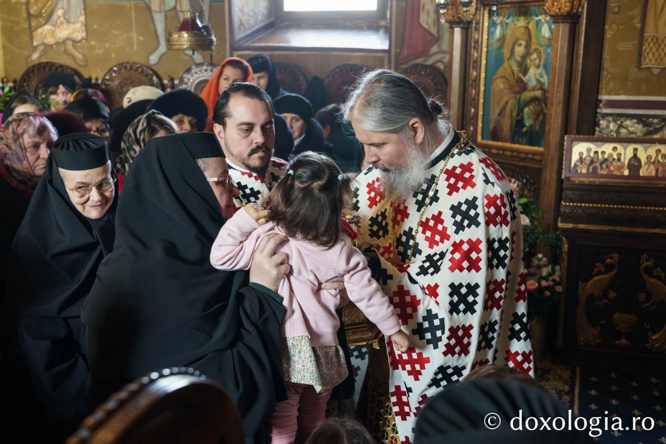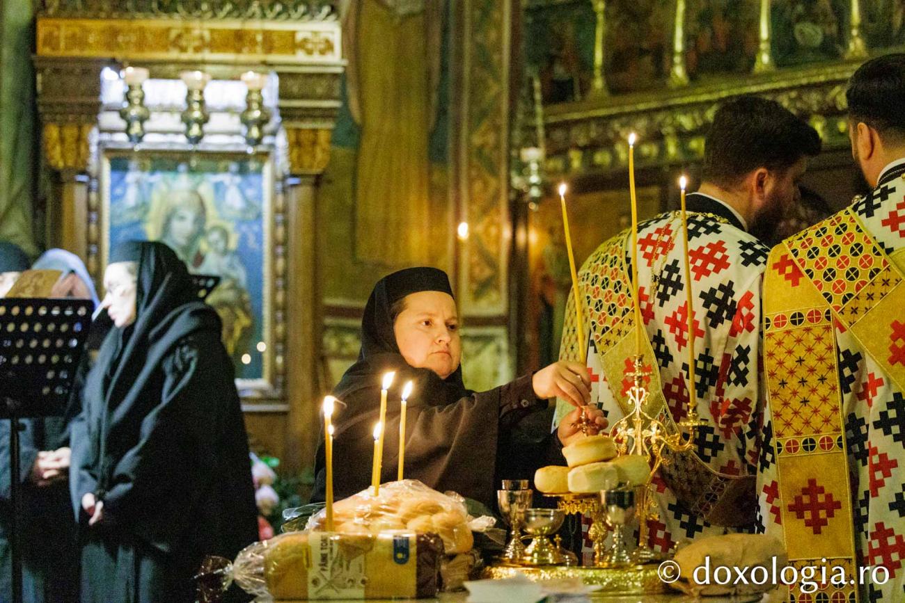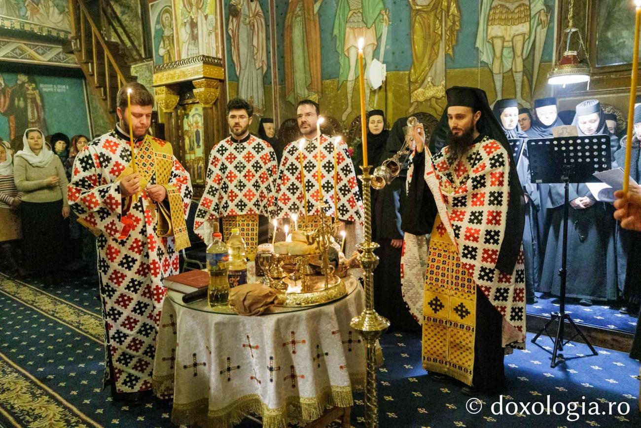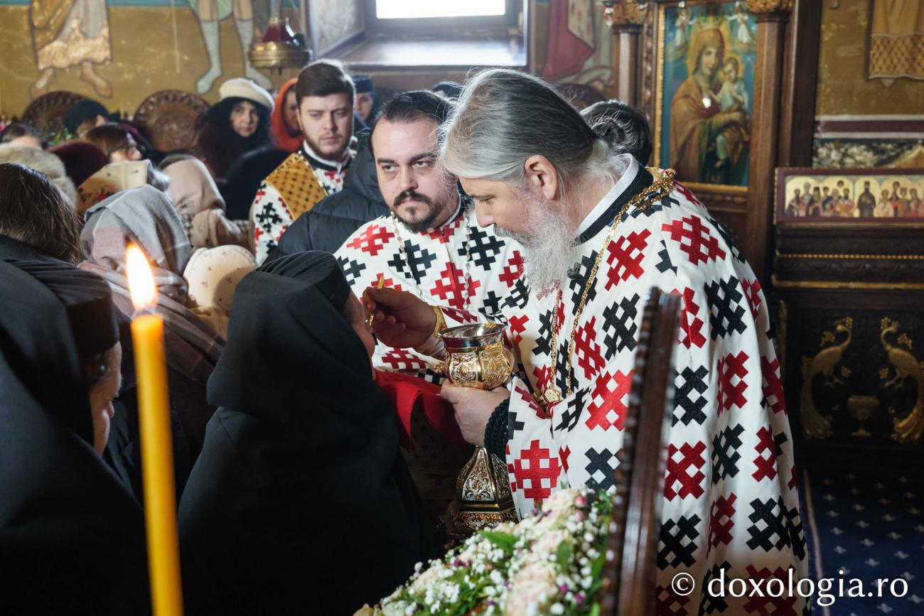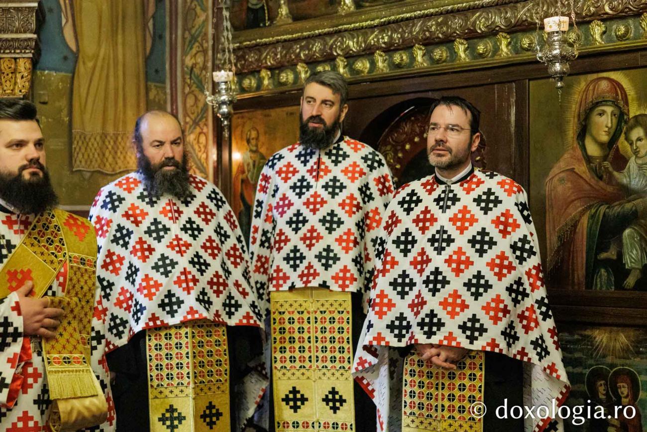 Sfânta Liturghie a fost săvârșită de Înaltpreasfinţitul Părinte Teofan, Mitropolitul Moldovei și Bucovinei, înconjurat de un sobor de preoți și diaconi.