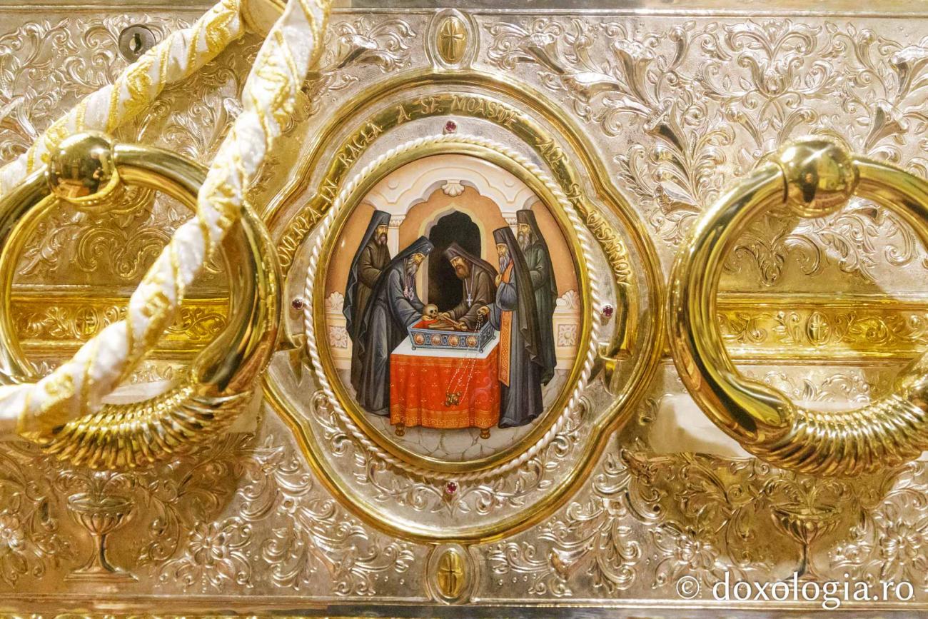 (Foto) Racla cu moaștele Sfântului Cuvios Mucenic Visarion de la Lainici
