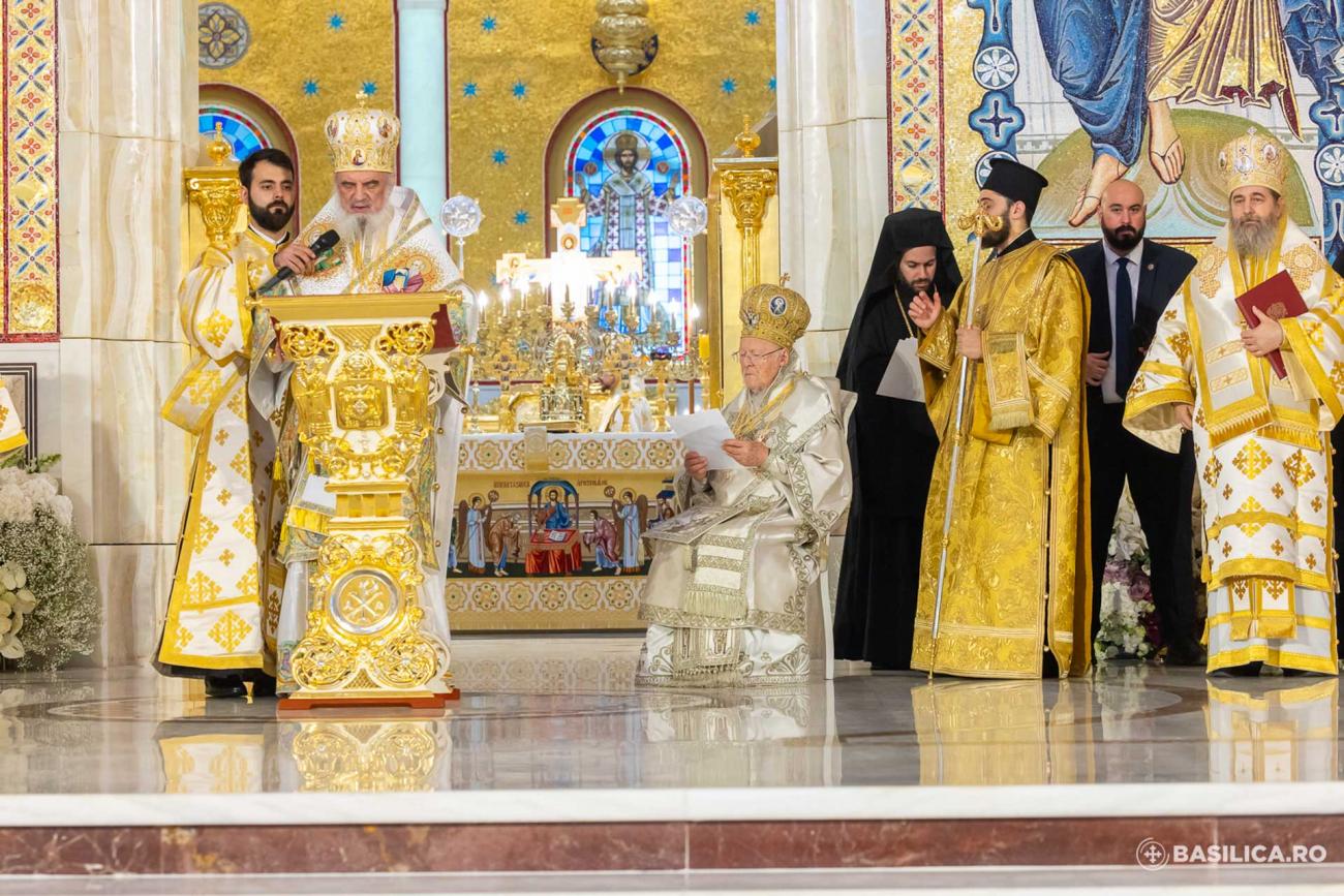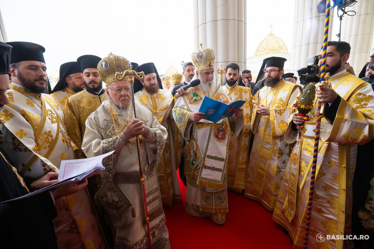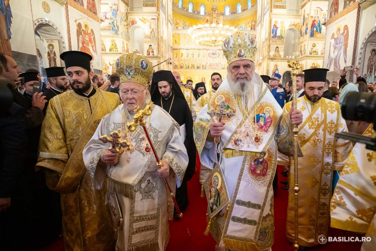 Sanctitatea Sa Bartolomeu I, Patriarhul Ecumenic, și Preafericitul Părinte Daniel, Patriarhul Bisericii Ortodoxe Române, au sfințit duminică pictura în mozaic a Catedralei Naționale.