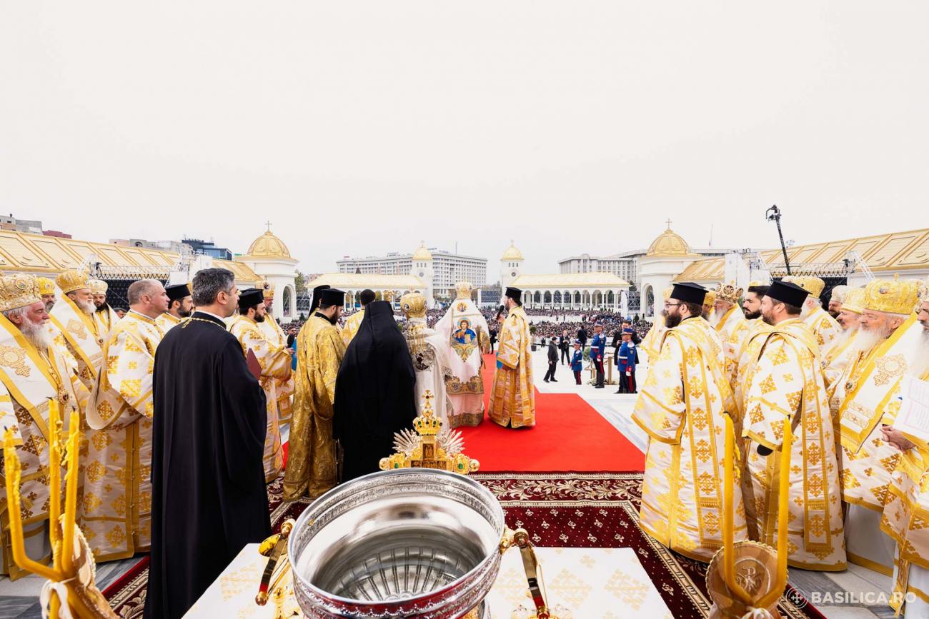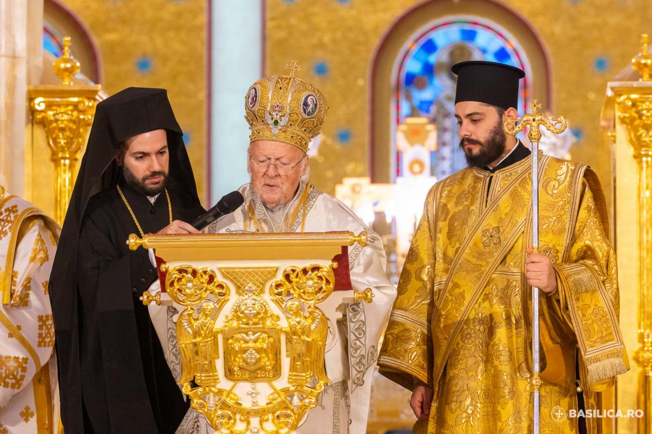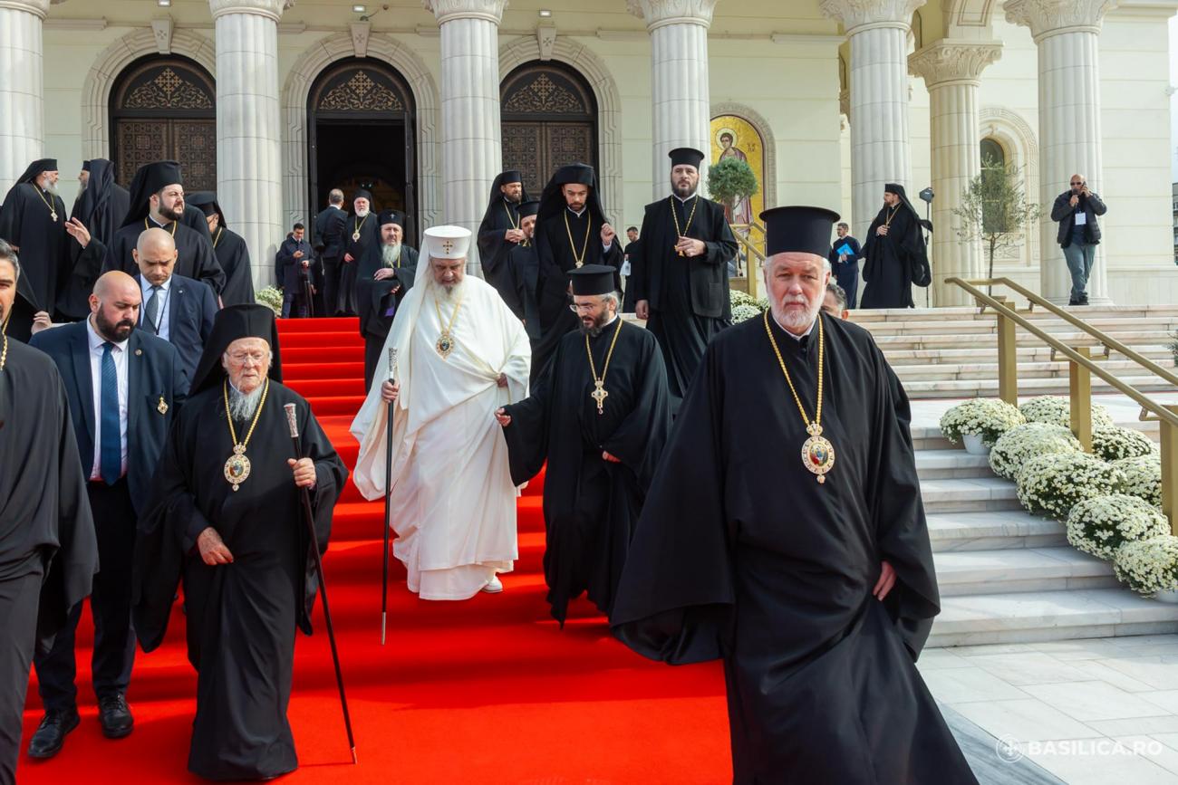Sanctitatea Sa Bartolomeu I, Patriarhul Ecumenic, și Preafericitul Părinte Daniel, Patriarhul Bisericii Ortodoxe Române, au sfințit duminică pictura în mozaic a Catedralei Naționale.