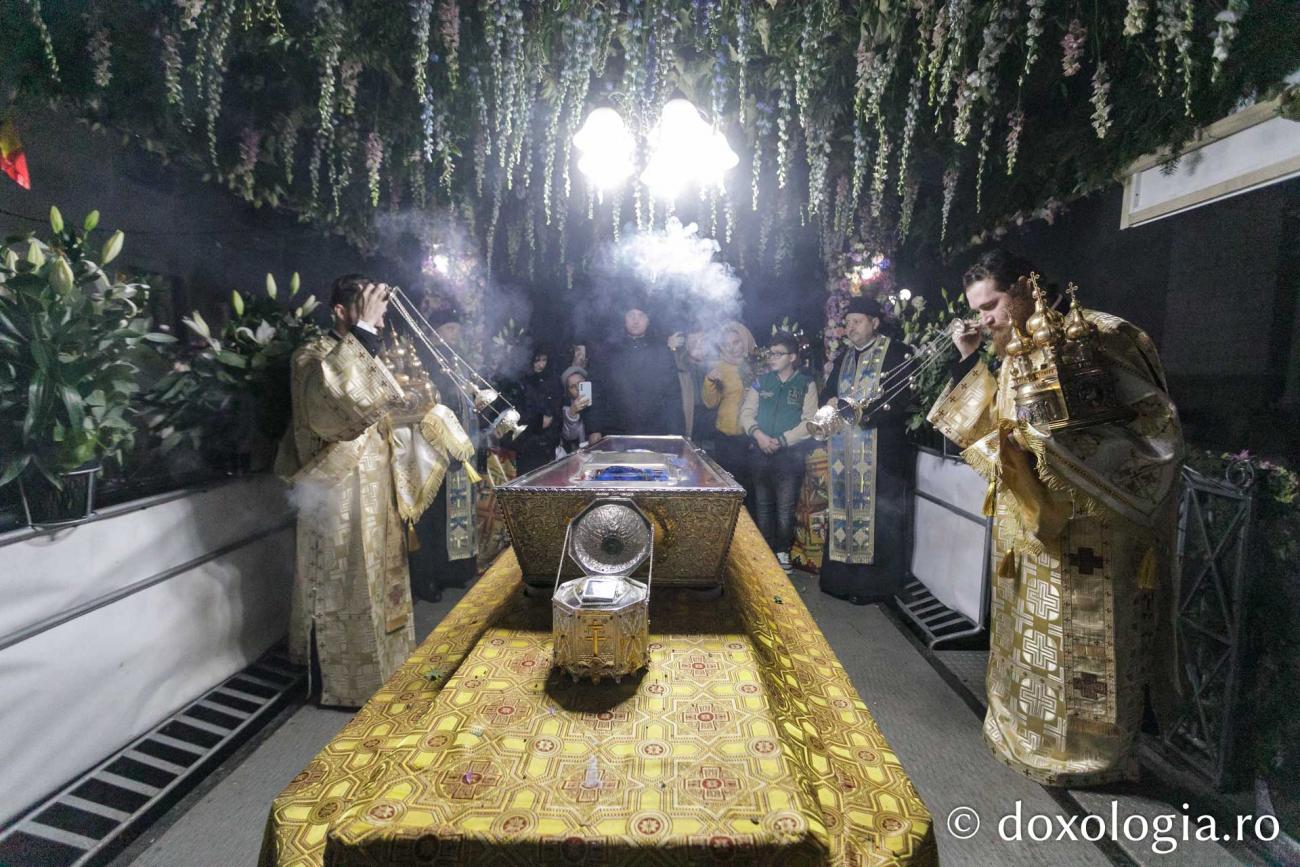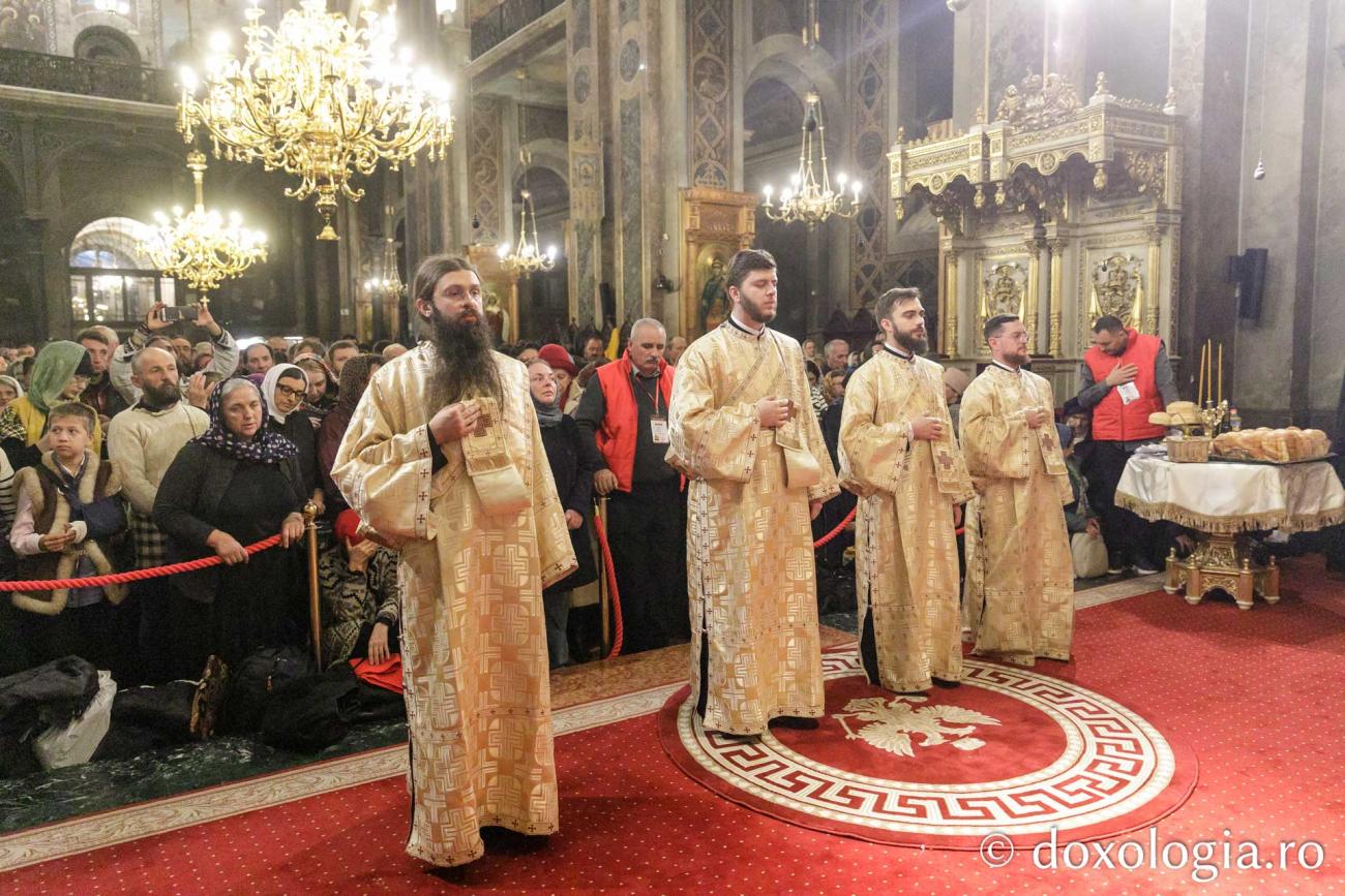 În seara zilei de luni, 13 octombrie, la Catedrala Mitropolitană din Iași, s-a săvârșit slujba de priveghere închinată Sfintei Cuvioase Parascheva (Vecernia, Litia, Utrenia și Sfânta Liturghie).