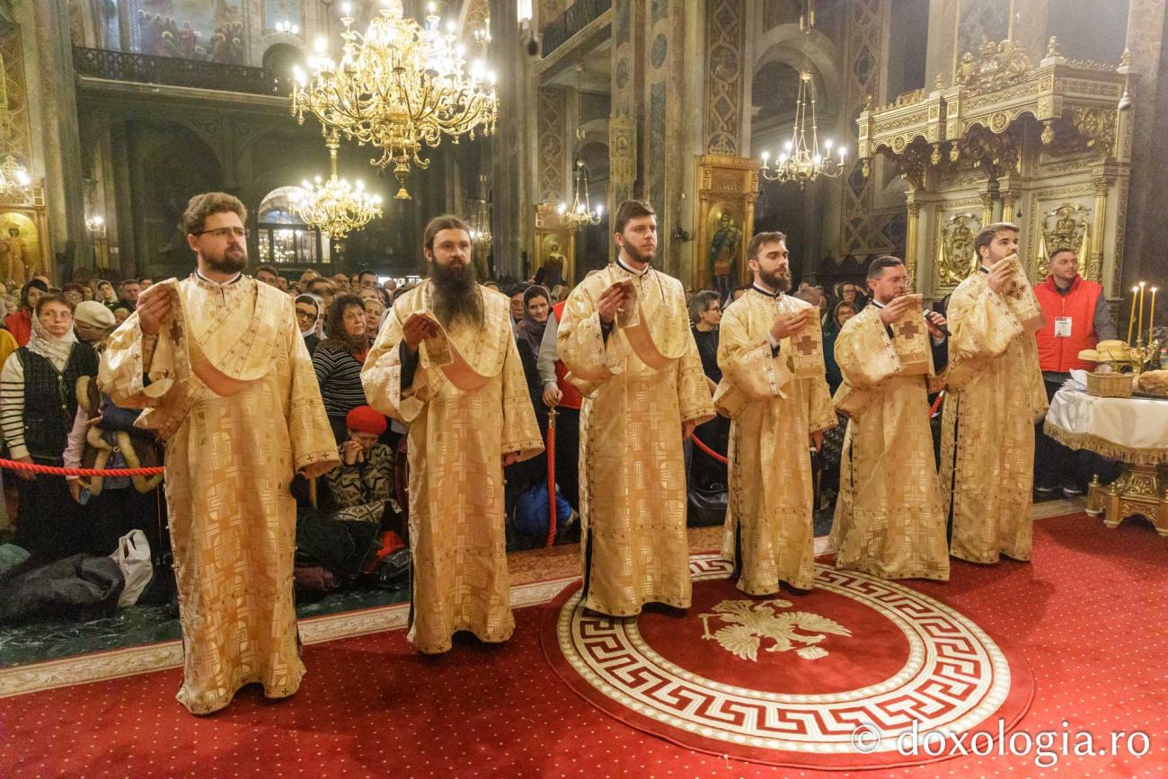 La priveghere a slujit Preasfințitul Părinte Nichifor Botoșăneanul, Episcop-vicar al Arhiepiscopiei Iașilor, înconjurat de un sobor de preoți și diaconi.