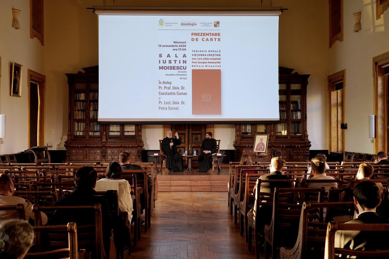 Sala „Iustin Moisescu” din incinta Ansamblului Mitropolitan Iași a găzduit în data de 15 octombrie, începând cu ora 17.00, prezentarea de carte „Teologia Morală”, volumele I și II, ediție completă, scrisă de profesorul Georgios Mantzaridis din Tesalonic. Lucrarea a fost publicată anul trecut la Editura Bizantină.