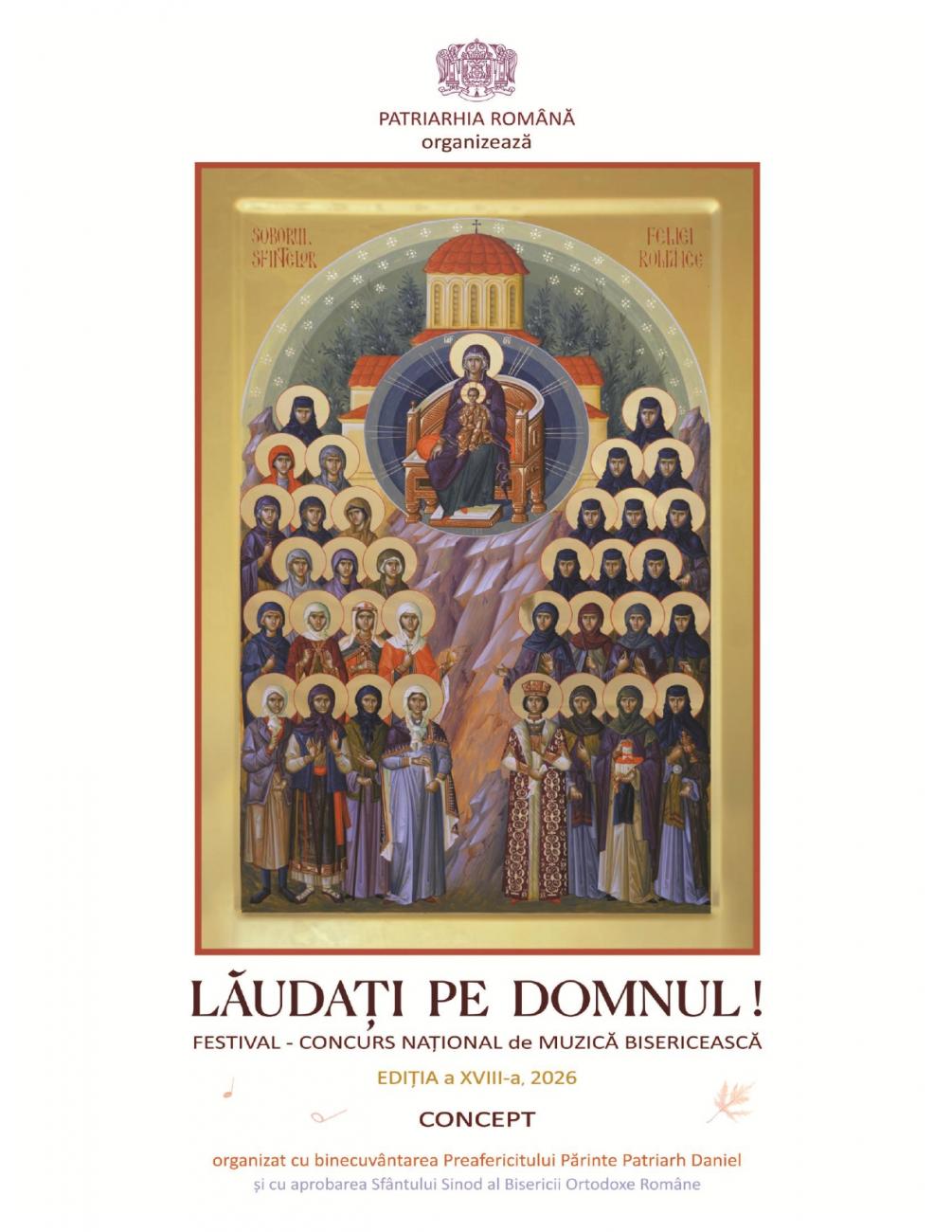 Patriarhia Română organizează, în perioada 1 martie – 1 octombrie 2026, ediția a XVIII-a a Festivalului-Concurs Național de Muzică Bisericească „Lăudați pe Domnul!”, eveniment desfășurat cu binecuvântarea Preafericitului Părinte Patriarh Daniel și cu aprobarea Sfântului Sinod al Bisericii Ortodoxe Române.