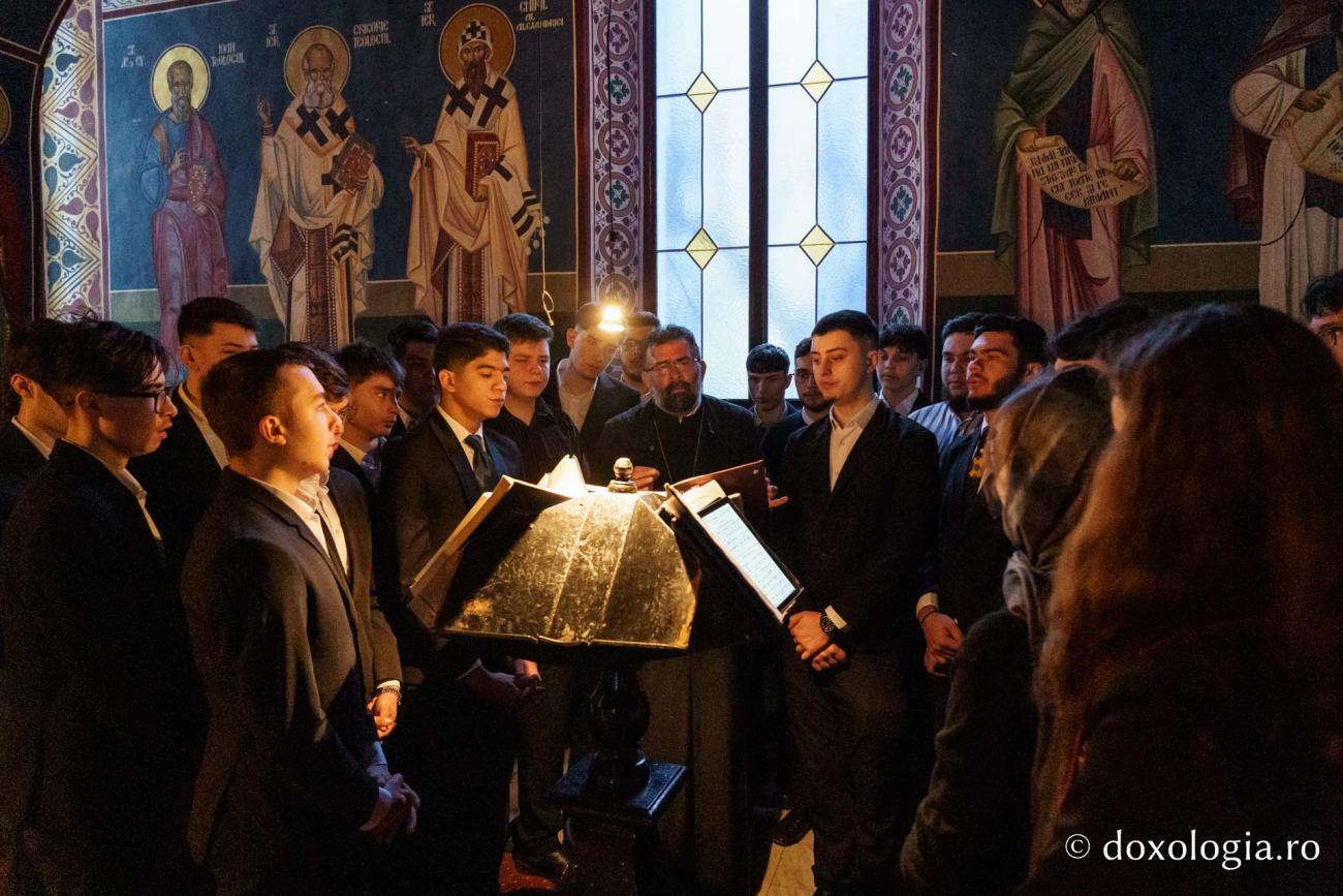 Seminariștii ieșeni, dimpreună cu cei de la liceele teologice din eparhie, dar și din alte școli din țară, și-au început ziua cu rugăciune, participând la slujba arhierească oficiată în capela seminarului. În cadrul Liturghiei, tânărul Teodor Prisacariu a fost hirotesit întru ipodiacon, pe seama Catedralei Vechi „Sfântul Gheorghe”. Dimpreună cu Părintele Mitropolit au mai slujit arhim. Hrisostom Rădășanu, consilier al Sectorului Învățământ al Arhiepiscopiei Iașilor, pr. Mihai Pavel, inspector patriarhal în cadrul Sectorului teologic-educațional al Administrației Patriarhale, pr. director Constantin Simiraș, pr. prof. Dragoș Bahrim, precum și părinți profesori și ostenitori ai școlii teologice.
